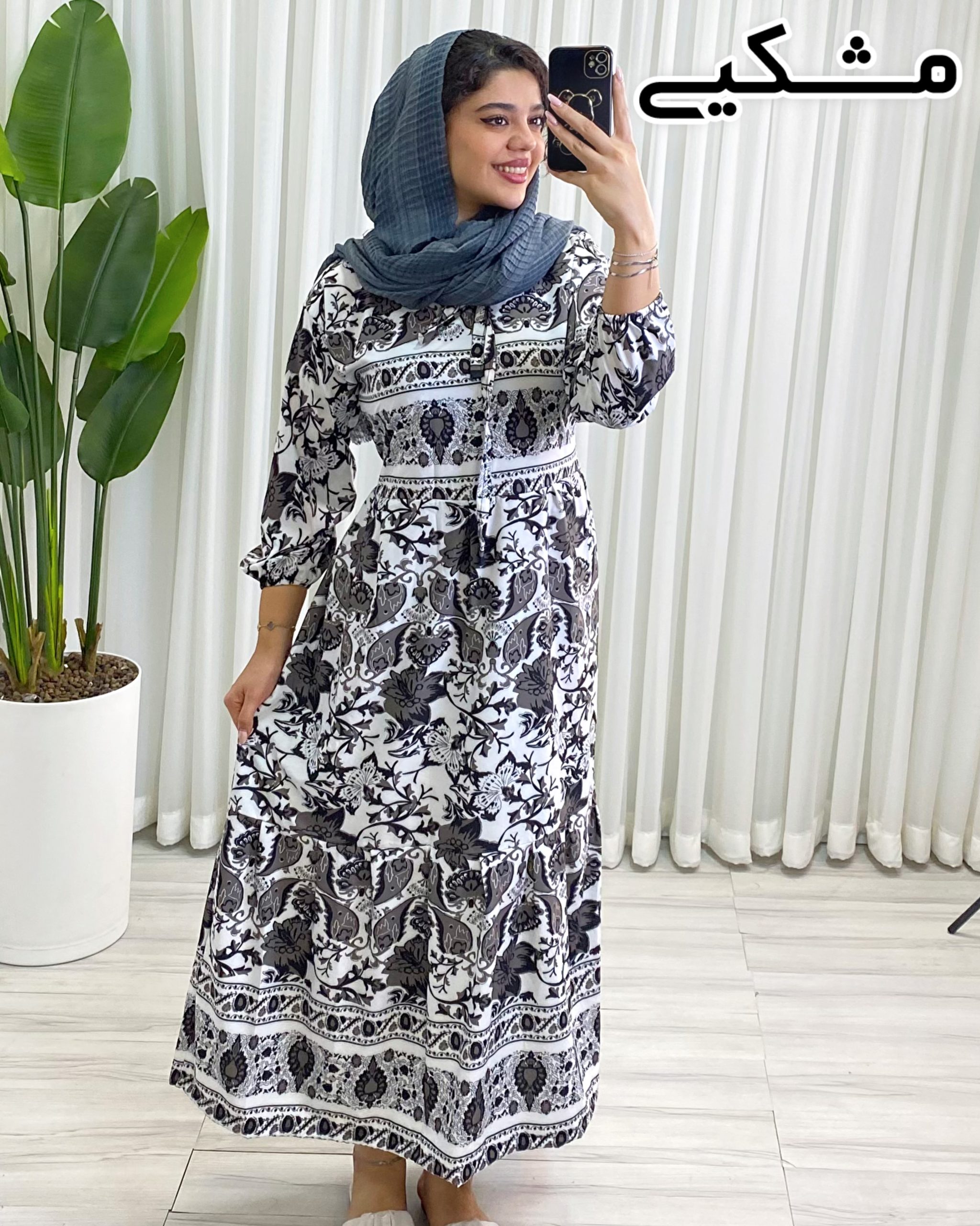 خانه پوشاک زنانه مانتو و پیراهن زنانه پبراهن بوگاتی طرح گل کد 335